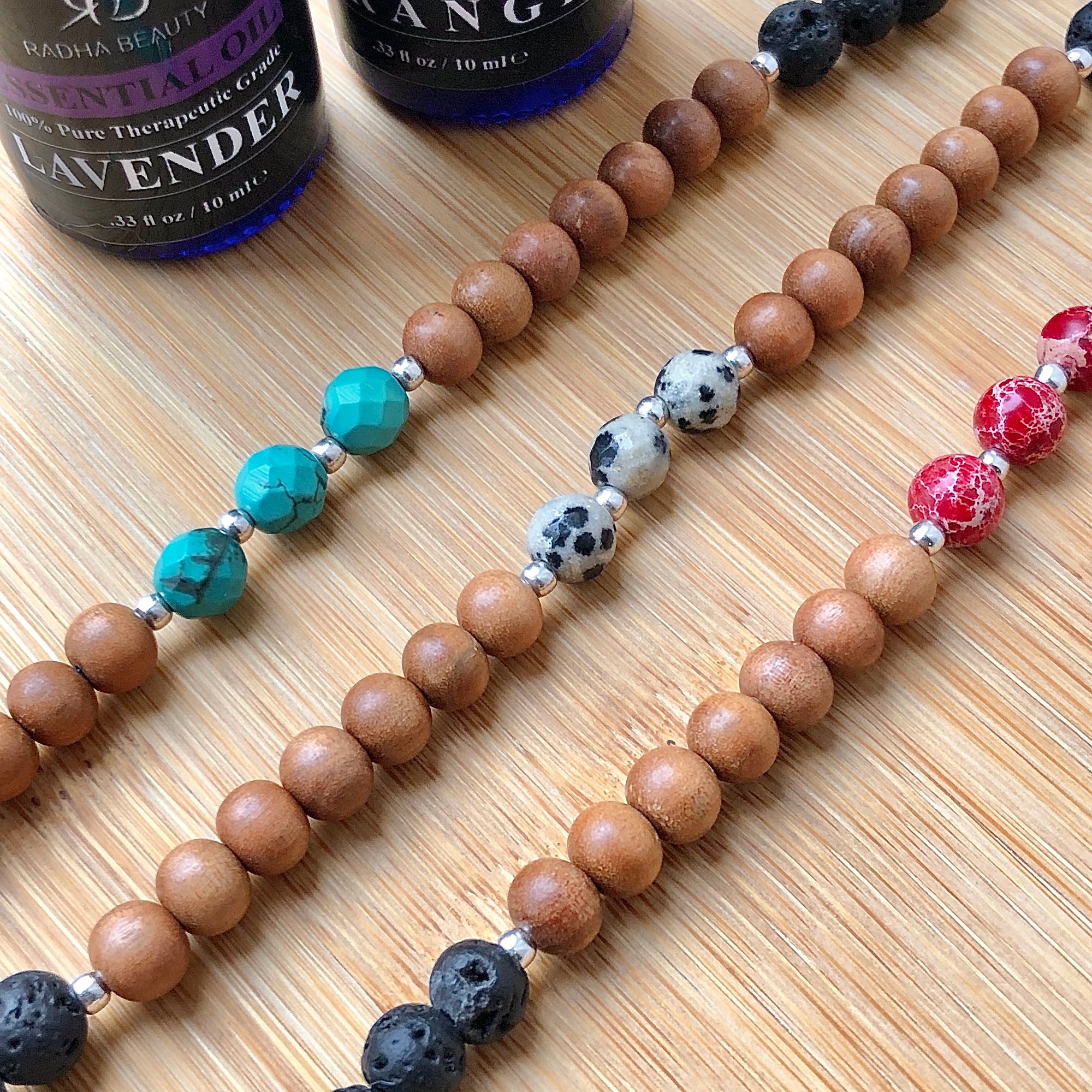6mm Sandalwood, Lava, Turquoise, Dalmatian jasper, Red Regalite